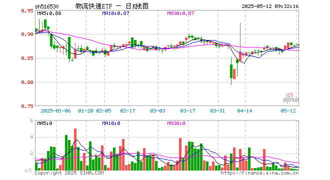 5月12日,物流快递ETF(516530)开盘涨0.34%,报0.879元。物流快递ETF(516530)重仓股方面,顺丰控股(43.440, 0.07, 0.16%)开盘涨0.76%,中远海控(16.150, 0.48, 3.06%)涨0.80%,大秦铁路(6.710, -0.02, -0.30%)跌0.15%,京沪高铁(5.990, 0.07, 1.18%)涨0.17%,春秋航空(56.020, 0.00, 0.00%)涨0.00%,圆通速递(12.950, 0.01, 0.08%)涨0.00%,招商轮船(6.330, 0.19, 3.09%)涨0.50%,建发股份(10.260, -0.03, -0.29%)涨0.00%,蔚蓝锂芯(13.240, -0.07, -0.53%)涨1.91%,物产中大(5.270, -0.03, -0.57%)涨0.00%。
